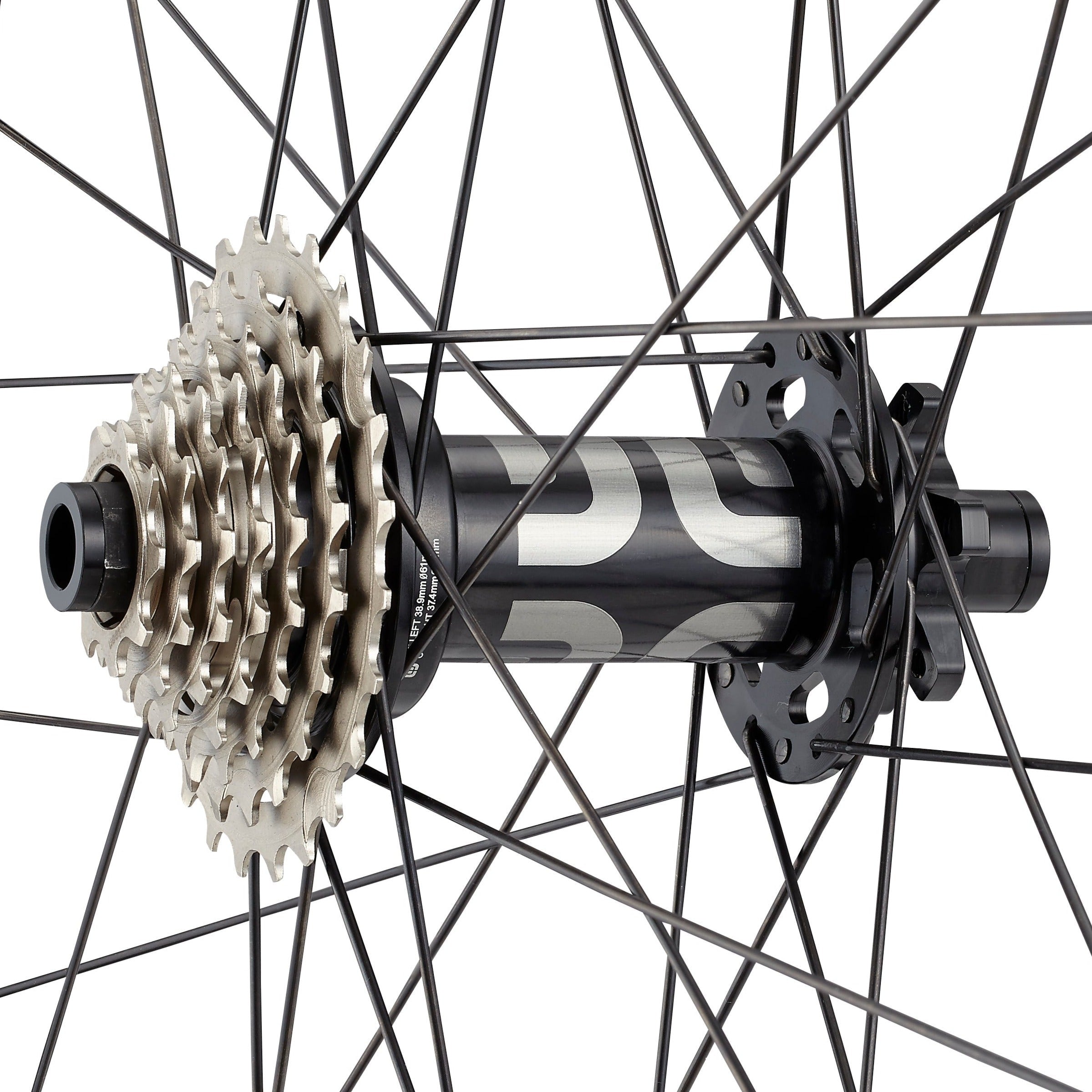 The Grappler DH rear hub features a unique integrated 7-speed 9-24T cassette/ driver, exclusively engineered for e*thirteen's downhill rear wheels. This innovative system has a compact design that reduces weight and parts compared to a standard rear hub. It also creates a more robust wheel architecture through a broader spoke bracing angle. This allows the wheel to have equal spoke lengths and tension on both sides for more consistent handling and better wheel durability.