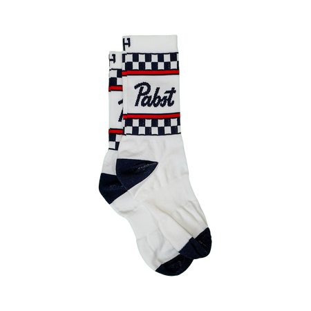 From the checkered flag straight to the barstool, the Pabst Blue Ribbon Racing socks are the perfect blend of race and party. You'll be lookin' fast turning over the pedals, and lookin' cool sippin' an ice cold PBR with them danglin' from a tailgate as well.